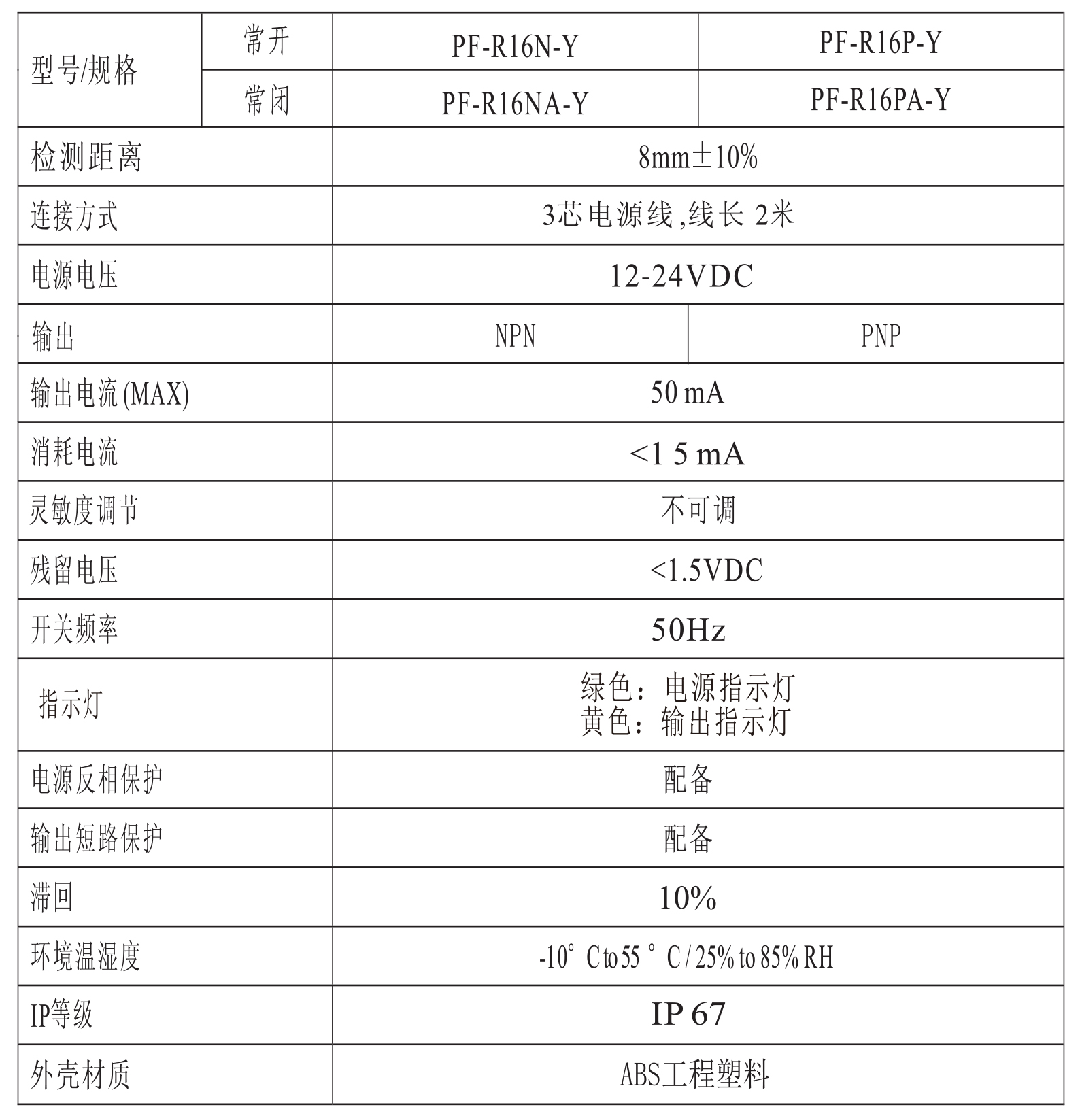 > 産品中心 >>傳 感 器 >> 電容傳感器 >> 方型電容式傳感器PF-R16-Y