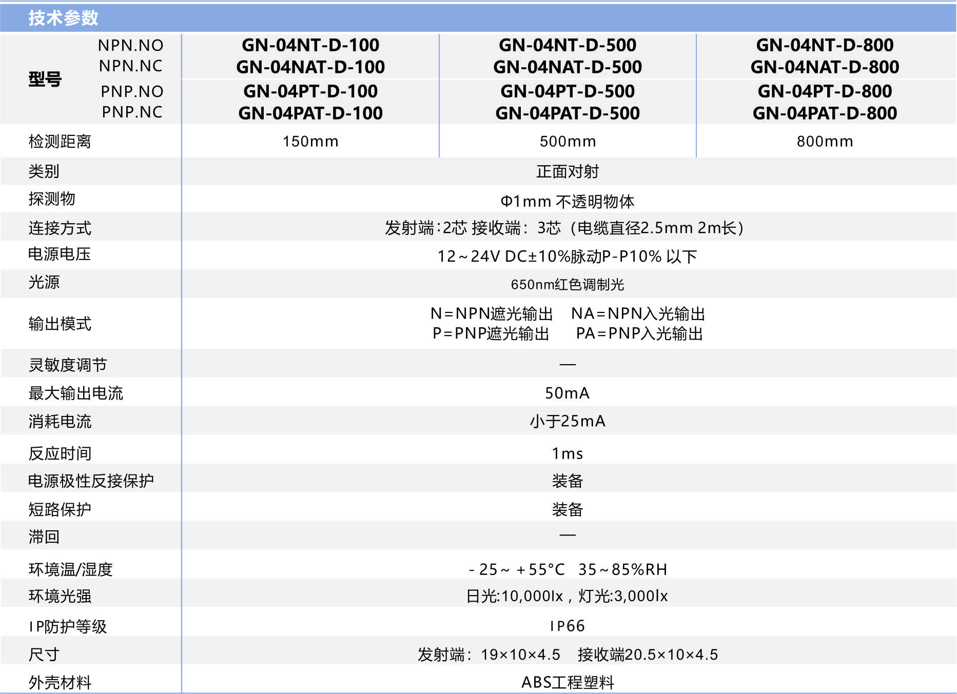 > 産品中心 >>傳 感 器 >> 光電開關 >> 超薄光電正面對射GN-04T-D
